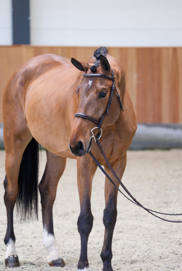 From the moment you see her move, you notice her rhythm, scope, and expression. She floats effortlessly across the ground and shows an athletic stride that will develop even further as she matures. Although still young, she learns quickly, accepts new experiences with confidence, and adapts easily to her handler. As a result, she is a wonderful choice for riders who appreciate a promising horse with an intelligent mind and a calm attitude.