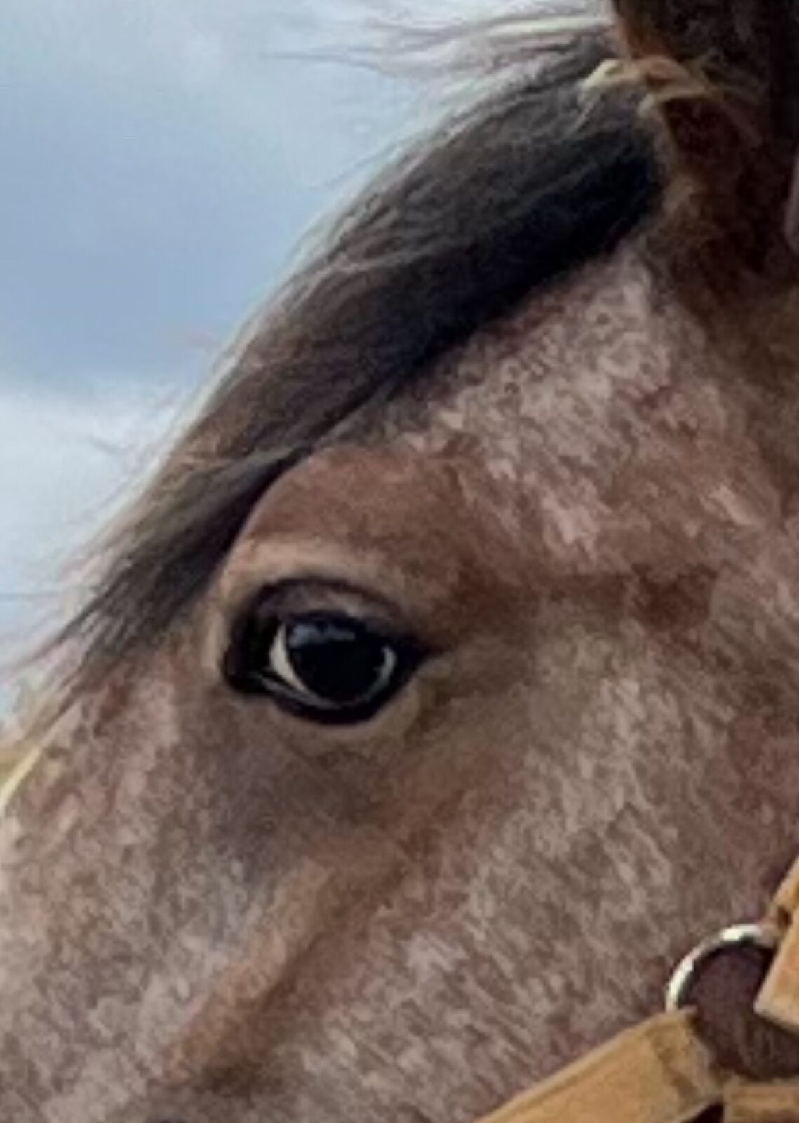 Currently standing at 13hh, Maddi features strong bone structure as well as a thick, flowing mane and tail. In addition, she shows classic Appaloosa traits such as sclera around her eyes and striped hooves. As she matures to 15.2hh, her athletic movement and straight, correct gait will become even more impressive.
