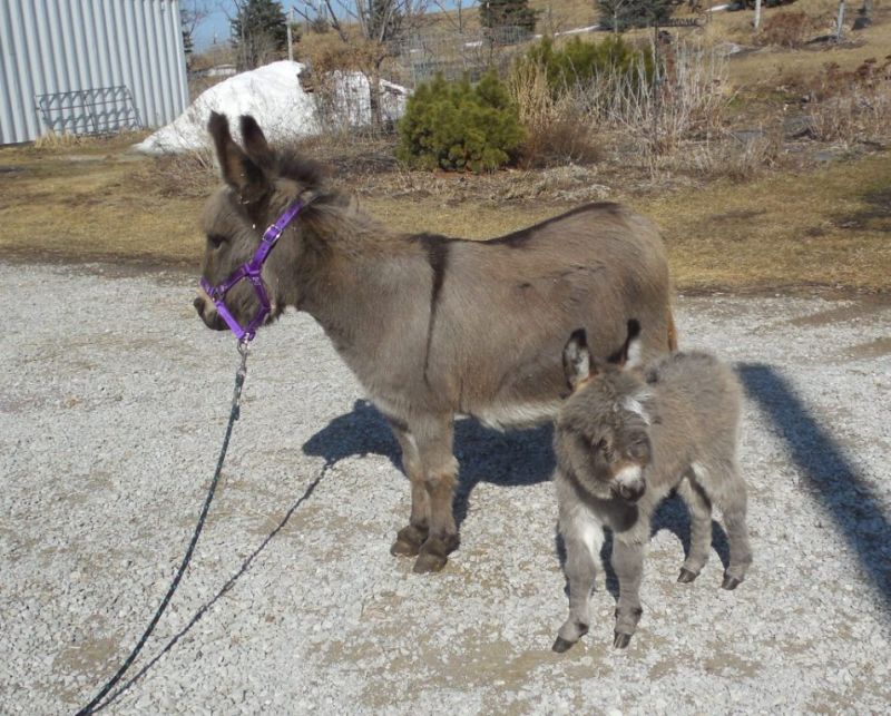 This miniature donkey’s unique gray-dun coat and small stature set it apart from other donkeys. It is not only charming but also hardy and low maintenance. Its friendly personality makes it suitable for therapy work, petting zoos, or as a lovable farm animal. Being healthy and vet-checked ensures your mini donkey will thrive in your care.
