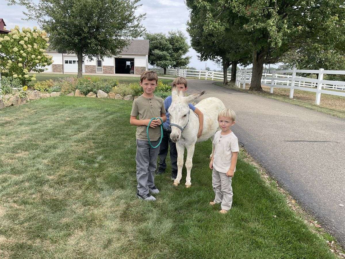 Jake has a steady, relaxed temperament that makes daily handling simple and enjoyable. He is confident without being pushy and gentle without being nervous. He leads well, stands tied, and accepts new experiences with ease. Many miniature donkeys are friendly, but Jake’s combination of calm behavior and responsiveness sets him apart. Because he is bombproof, he stays composed in different environments, making him a reliable partner for both adults and children.