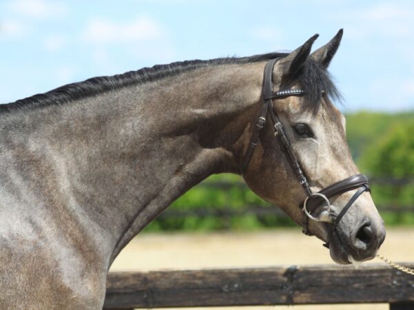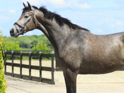 Exceptional 3-year-old grey Zangersheide mare, 16.3hh, from a world-class Grand Prix jumping pedigree. Untouched and ready to start. A premium future sport prospect. Young Jumping Mare for Sale Available